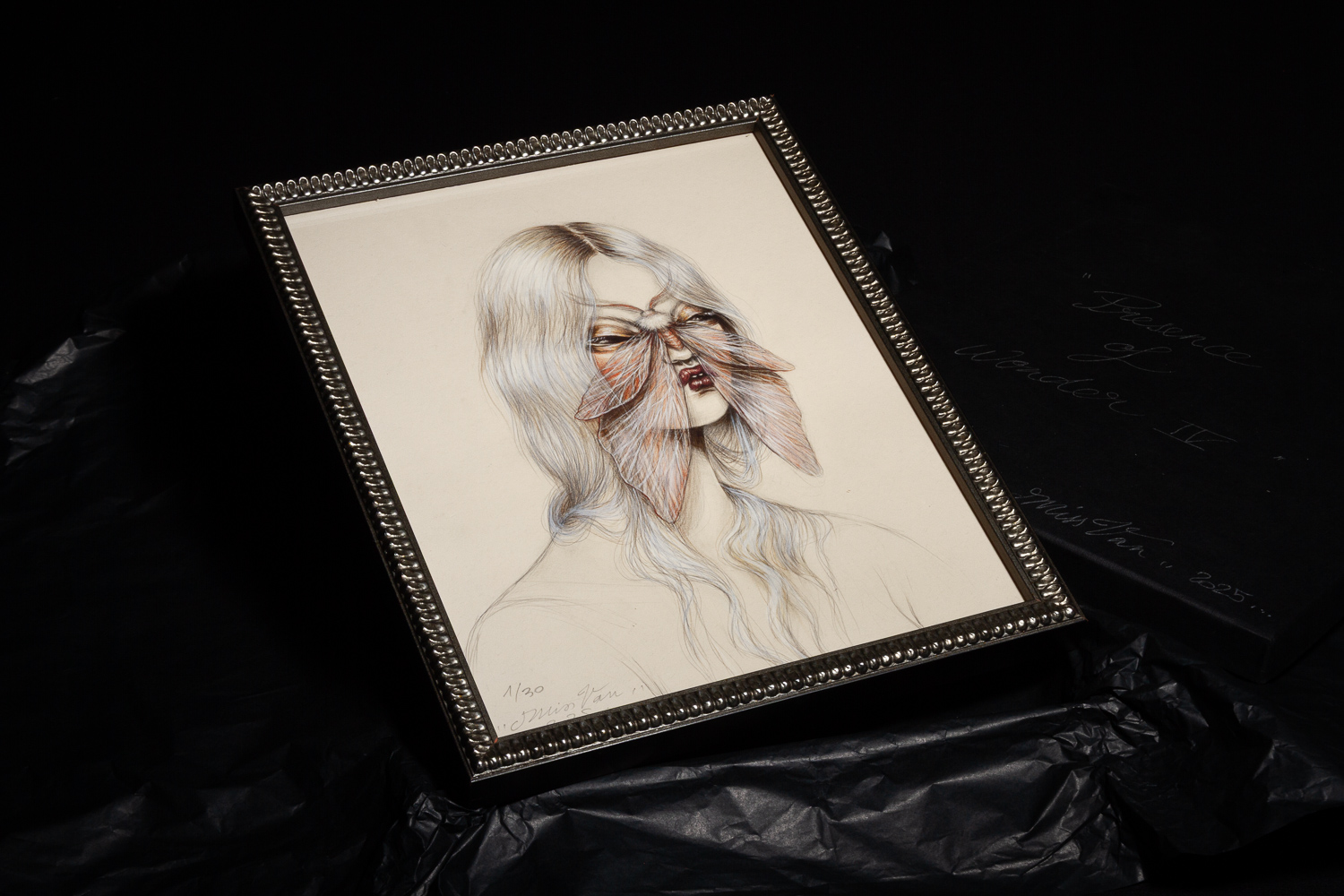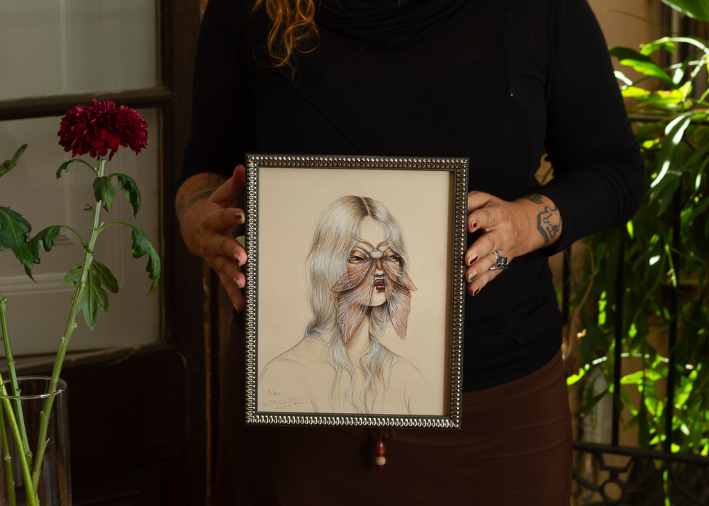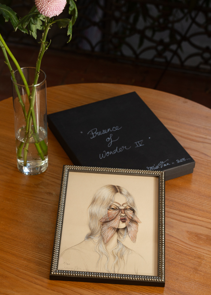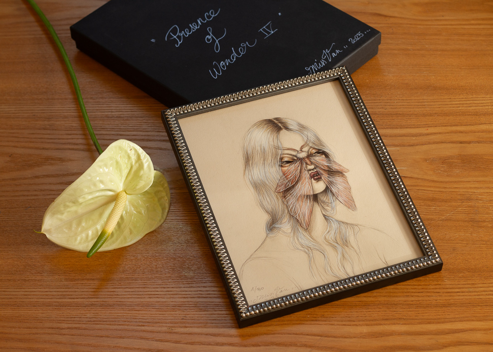 “In this series, I explore insect wings as a second skin — thin and transparent — like a mask, makeup, or ornament; a delicate organic element naturally folding over the curves of the face and body… revealing intimacy and deep emotion.”
